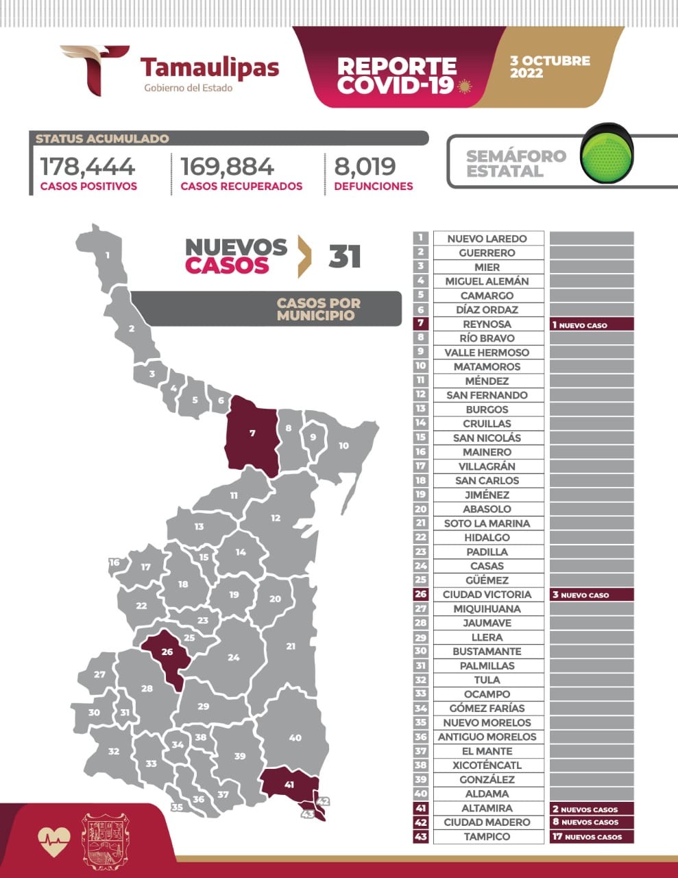 Al presentar el balance oficial de la pandemia, el funcionario estatal confirmó 31 nuevos casos de la enfermedad, por lo que pidió reforzar las medidas de prevención universales como son el uso del cubre bocas, la higiene de manos, la vacunación anti covid y la sana distancia.