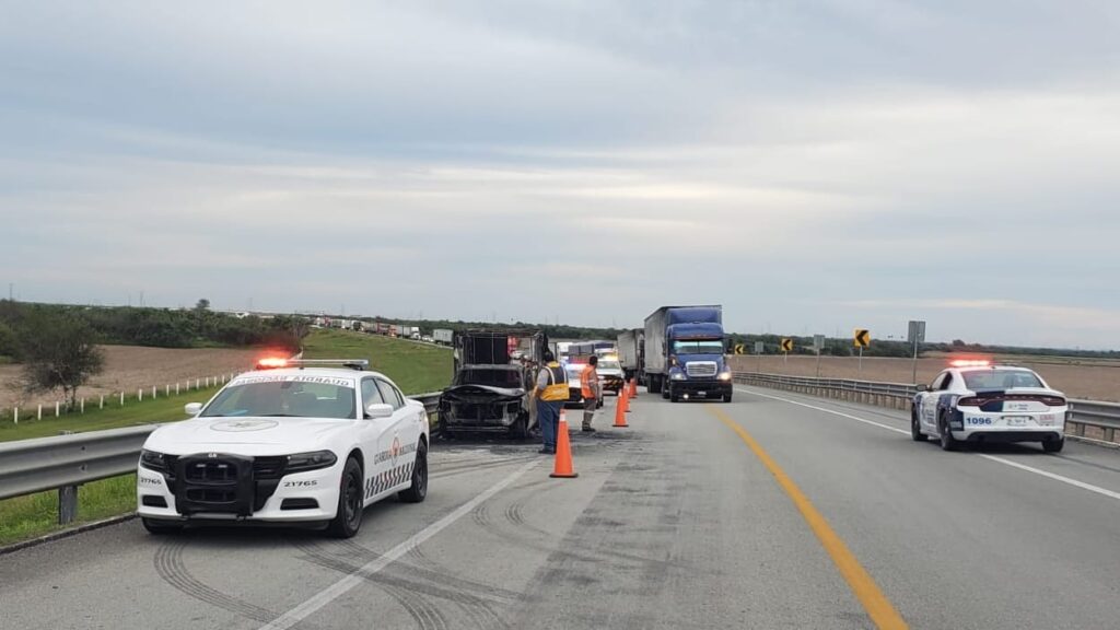 Su conductor resultó ileso y comentó que había acudido al Puente Internacional Pharr a recoger paquetería de importación y al dirigirse con destino a la ciudad de Apodaca, Nuevo León.