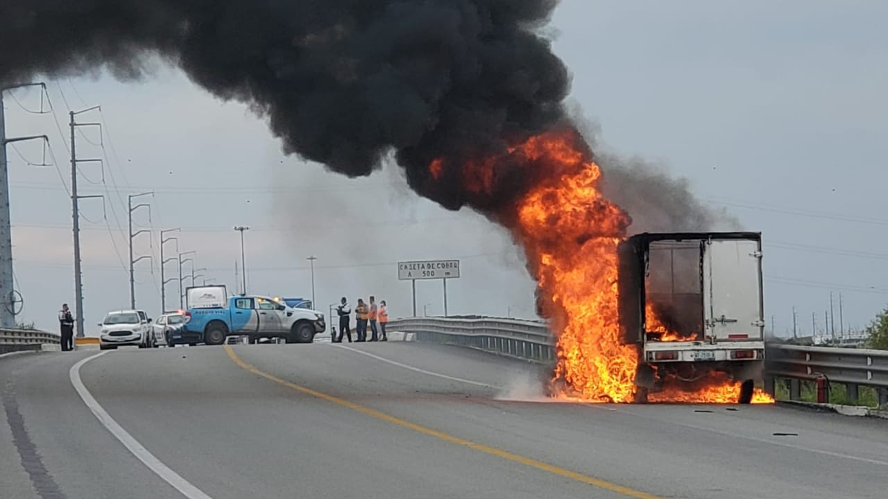 La circulación en el libramiento Sur 2 de Reynosa fue suspendida, mientras realizaban maniobras para sofocar las llamas.