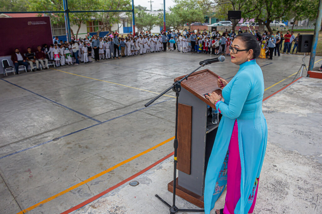El Gobierno de Matamoros a través de la Secretaría de Educación, Cultura y Deporte en coordinación con la escuela primaria “Naciones Unidas” celebraron esta mañana LXXVII Aniversario de las Naciones Unidas, acto que encabezó con la representación del alcalde Mario Alberto López Hernández, la titular de SECUDE, Genoveva Hi González.