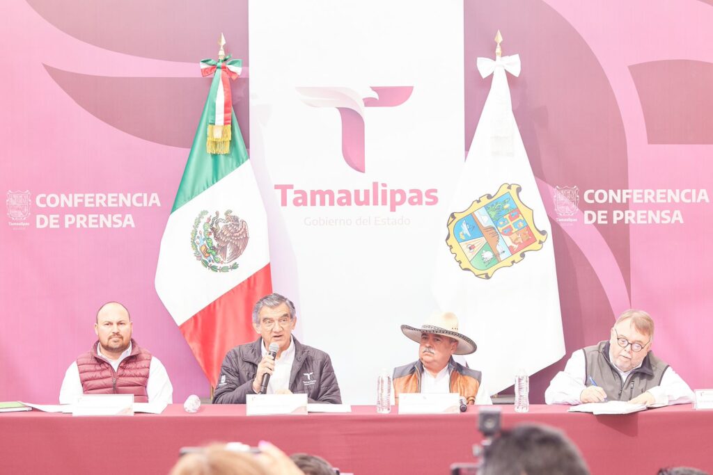 Acompañaron al gobernador en esta conferencia de prensa, el alcalde de Tula, Antonio Leija Villarreal; el secretario General de Gobierno, Héctor Joel Villegas y el secretario de Administración, Jesús Lavín Verástegui.