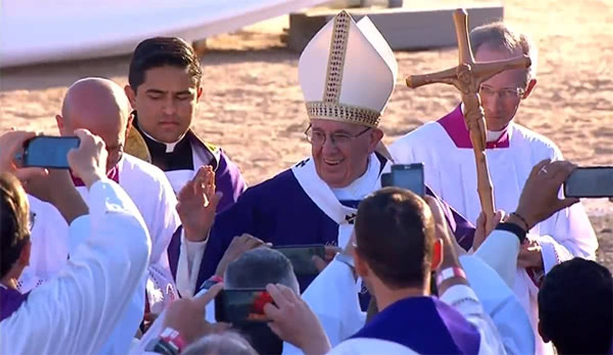La homilía se llevó a cabo en las inmediaciones del Río Bravo, a la cual asistieron decenas de migrantes que portaban banderas de sus países y que se encuentran en México con la esperanza de poder cruzar a Estados Unidos y cumplir su sueño americano.