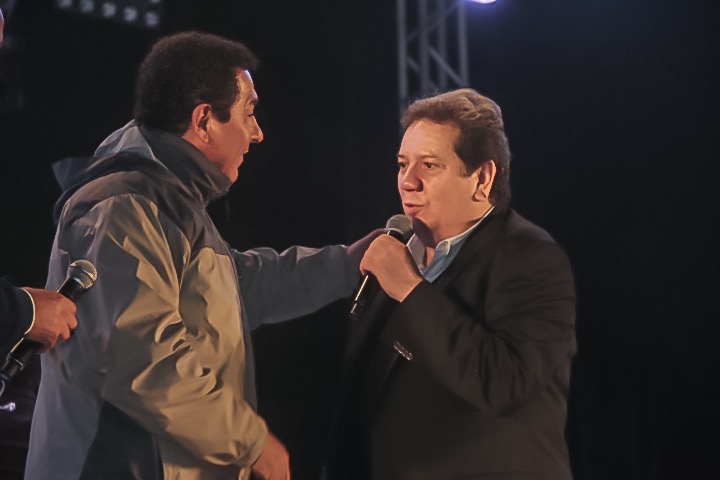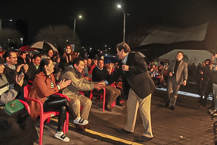 La emoción embargó a los asistentes cuando al salir al escenario “Coque” Muñiz invitó al Presidente Municipal a cantar la famosa canción “La Media Vuelta”, que ambos interpretaron y a la que también se sumó el público presente.