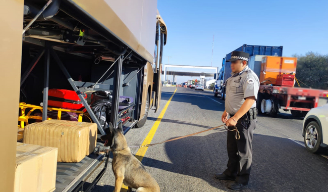 En cumplimiento de la Estrategia Nacional de Seguridad Pública y para contribuir a la Estrategia Nacional de Prevención de Adicciones Juntos por la Paz, en el estado de Aguascalientes, integrantes de la Guardia Nacional (GN) detectaron pacas con aparentemente marihuana, ocultas en el maletero de un autobús de pasajeros.