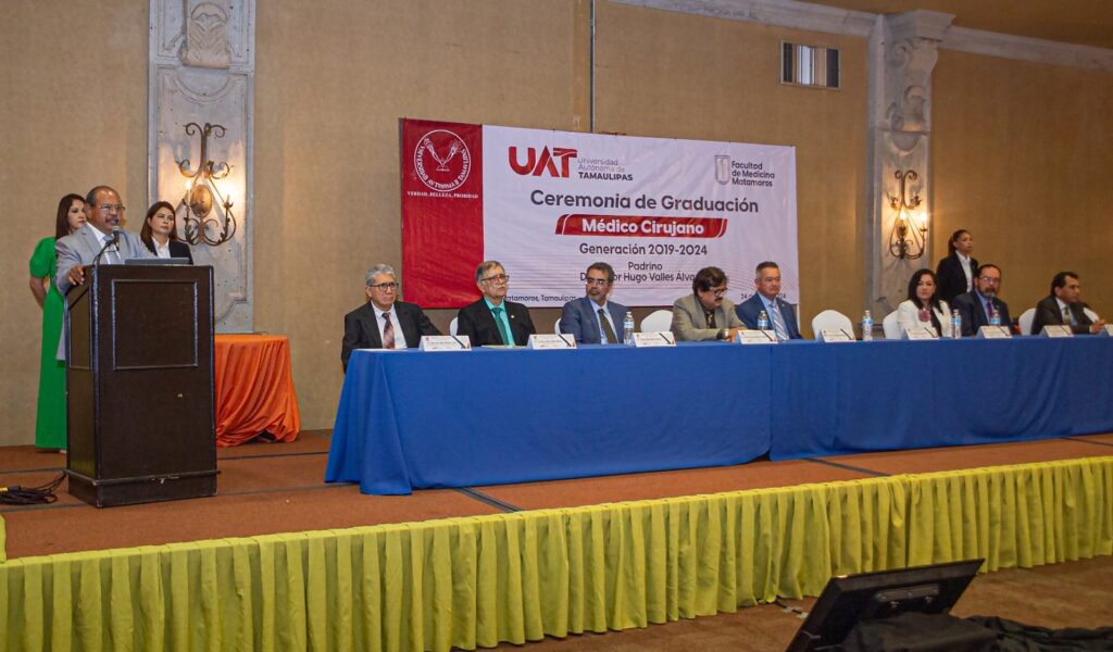 Este viernes, autoridades del Municipio de Matamoros participaron en la ceremonia de graduación de la carrera de Médico Cirujano, Generación 2019-2024, de la Facultad de Medicina de la Universidad Autónoma de Tamaulipas.