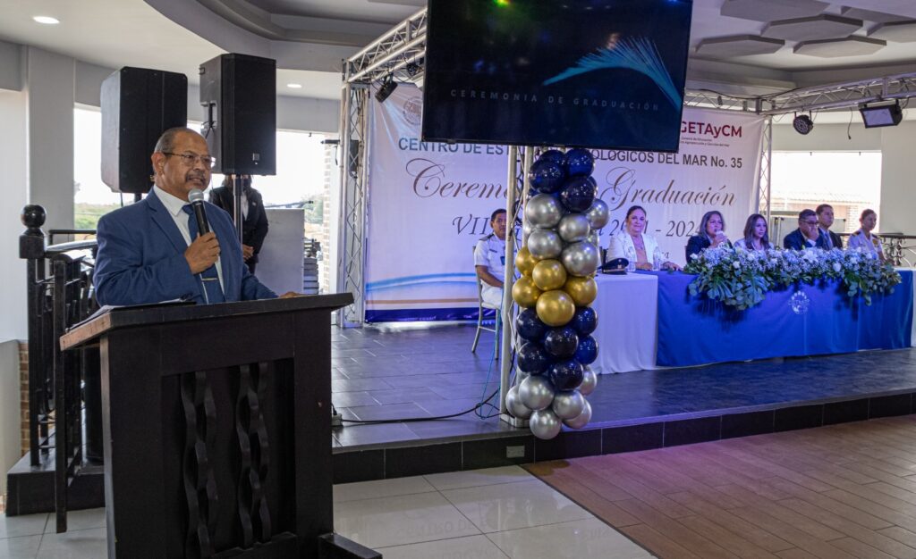 Este martes el Presidente Municipal de Matamoros, Dr. Rubén Sauceda Lumbreras asistió a la ceremonia de graduación del Centro de Estudios Tecnológicos del Mar No. 35, -CETMAR- marco en el que reconoció a los padres de familia por el esfuerzo que realizan para llevar a sus hijos por el mejor camino que existe para la supervivencia, como lo es la educación.