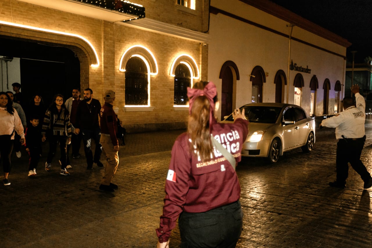 Elementos de Seguridad garantizan cruces seguros hacia el Balcón de la Presidencia de Matamoros