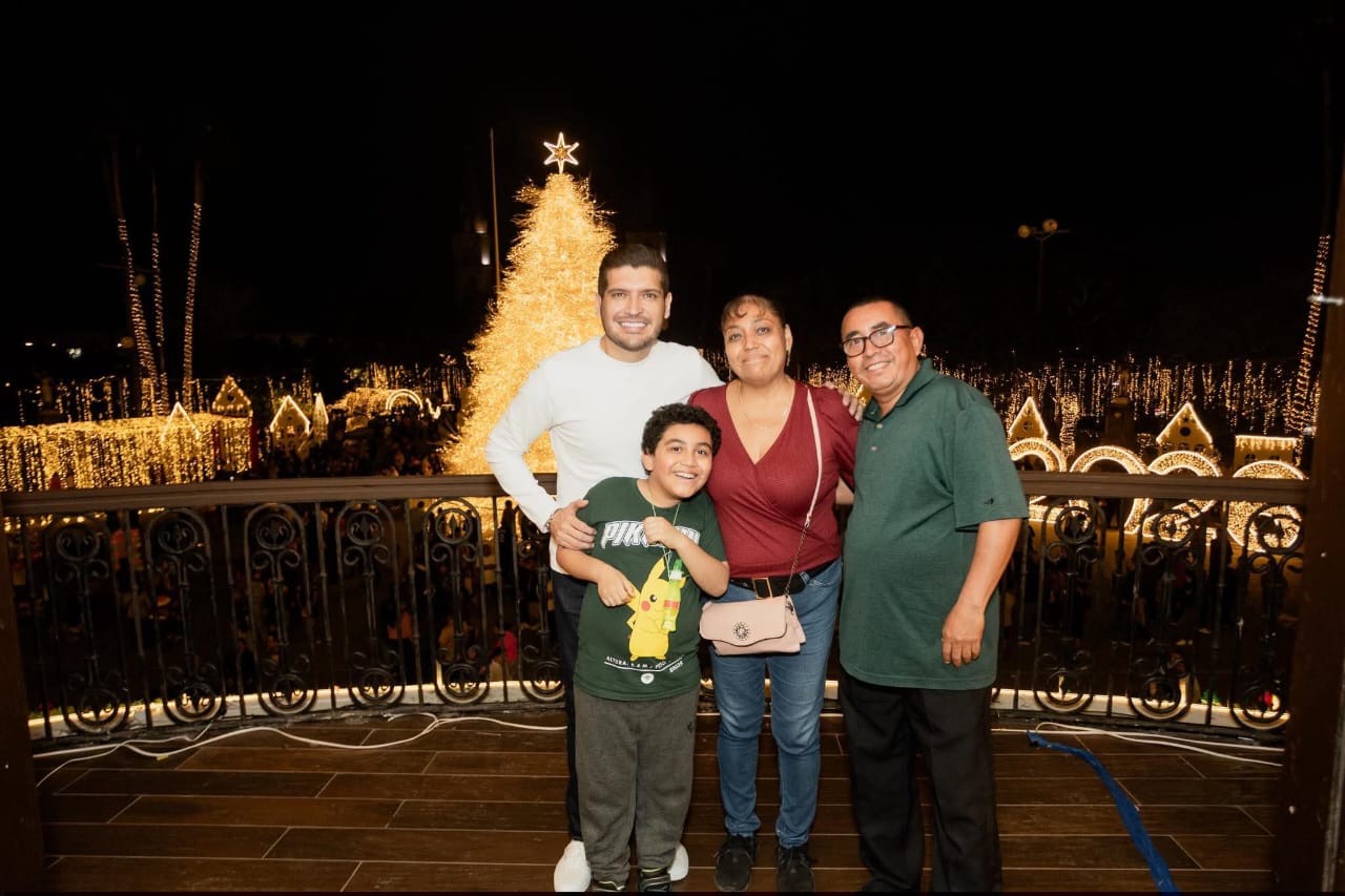 Con la presencia del alcalde Beto Granados, residentes de Matamoros tuvieron la oportunidad de subir al balcón de la Presidencia Municipal para tomarse su foto en familia, con el pino iluminado y la Plaza Principal como el marco perfecto que hace brillar a Matamoros.