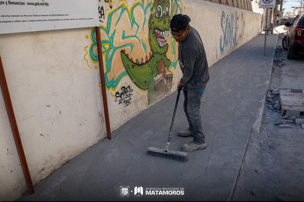 Ante la necesidad de contar con espacios públicos más seguros, accesibles y pensados para las personas, el Gobierno de Beto Granados continúa con el mejoramiento de banquetas en la Zona Centro de Matamoros, como una acción prioritaria que responde a una visión humanista y de atención directa a la ciudadanía. La intervención busca proteger al peatón y garantizar trayectos dignos en una de las áreas con mayor movilidad de la ciudad.