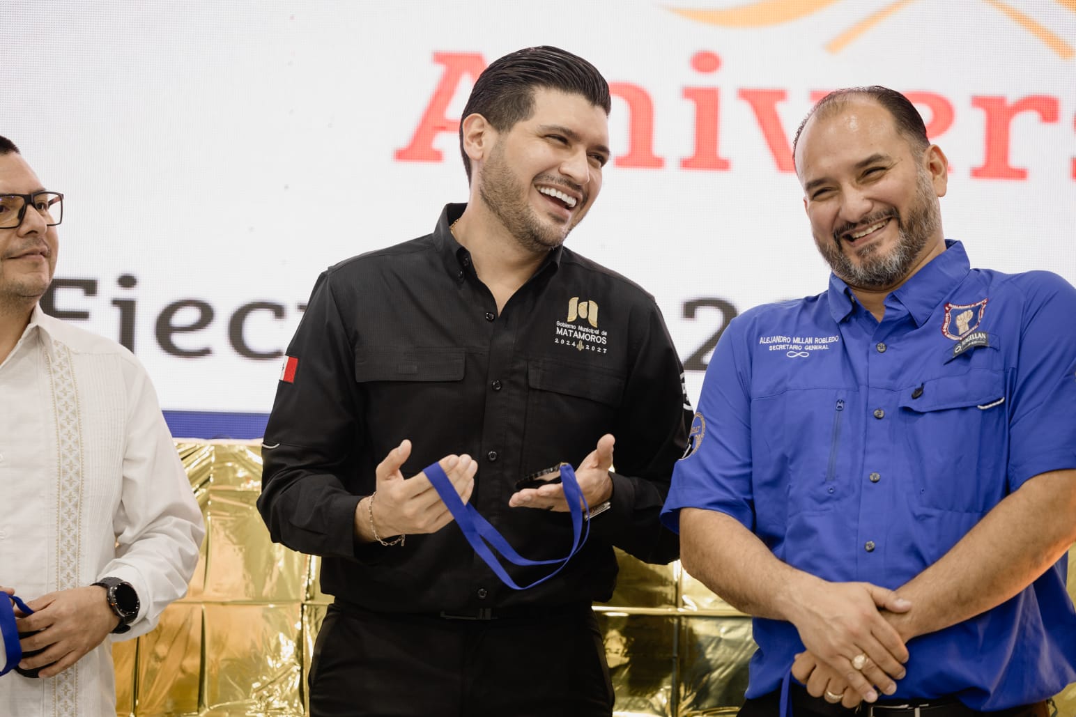 Al participar en la conmemoración del 46 Aniversario del Sindicato de Trabajadores al Servicio del Ayuntamiento de Matamoros, el alcalde Beto Granados realizó un amplio reconocimiento a los hombres y mujeres que, con su esfuerzo diario, logran que Matamoros Brille.