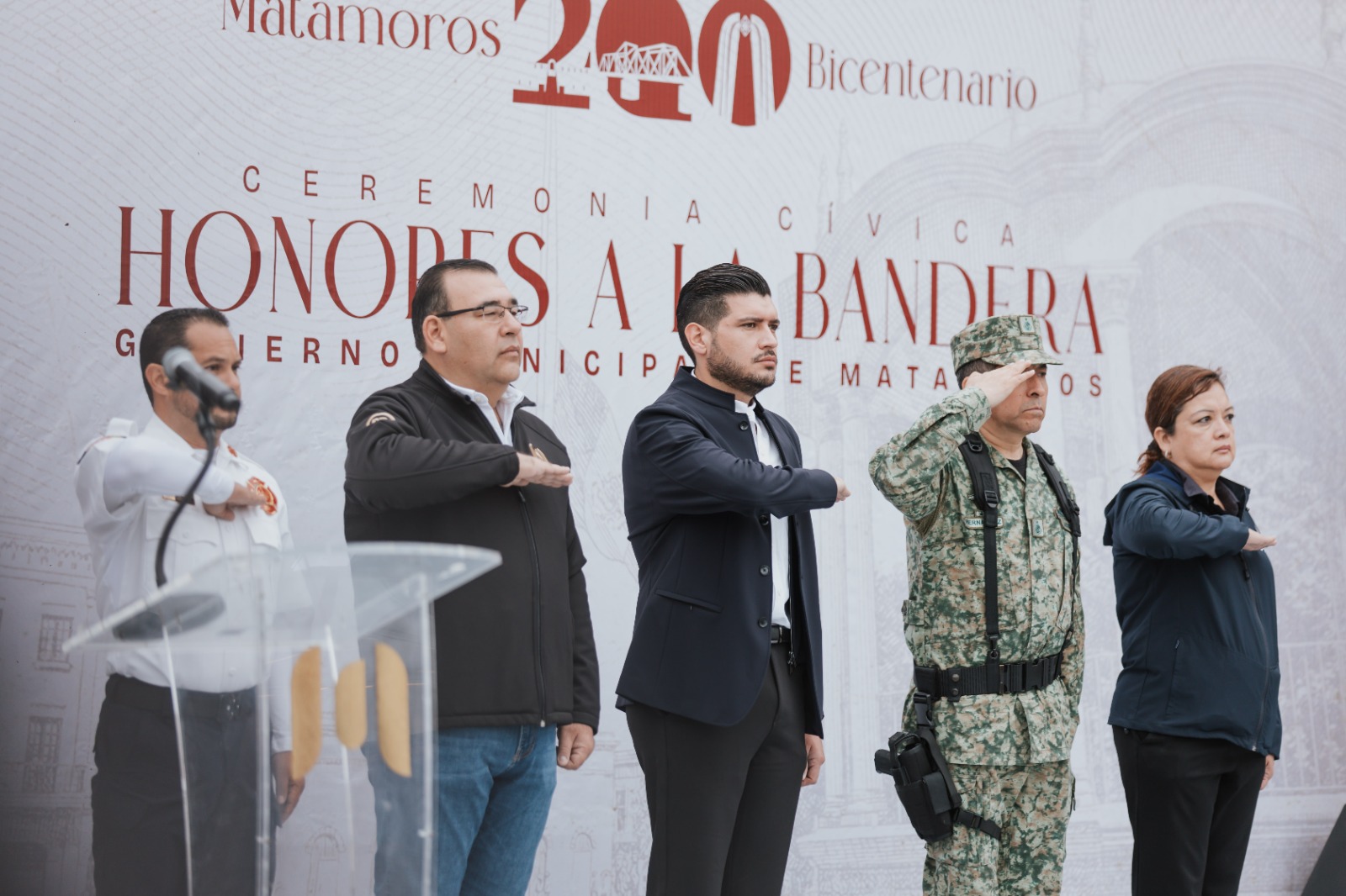 En el acto estuvieron presentes el General Brigadier DEM Juan Carlos Hernández García, Comandante de la Guarnición Militar de Matamoros; el ingeniero Gustavo Acuña, coordinador de Protección Civil; Manuel Perusquía, secretario del Ayuntamiento; y la licenciada Edith Martínez, coordinadora de responsabilidad social de la empresa Orbia.
