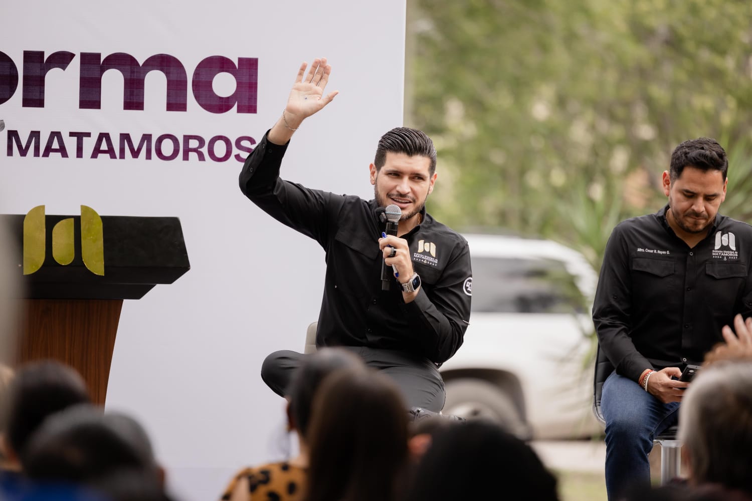 Acompañado por los secretarios de Desarrollo Urbano, Bienestar y Servicios Públicos —Alfonso Treviño, Perla Medina y César Reyes, respectivamente—, el Presidente Municipal escuchó de viva voz las inquietudes de los ciudadanos.